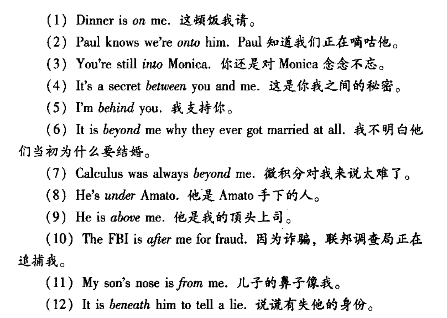 - 用于人名或人称代词前,表示主客体之间的某种关系